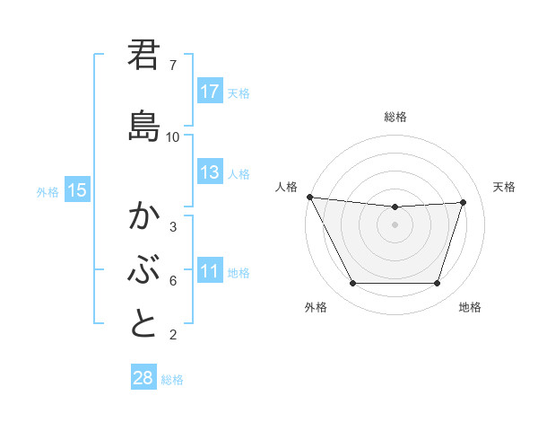 君島 かぶとさんを姓名の画数から五運を鑑定