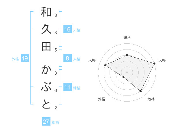 和久田 かぶとさんを姓名の画数から五運を鑑定