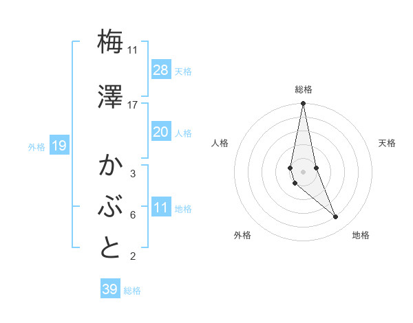 梅澤 かぶとさんを姓名の画数から五運を鑑定