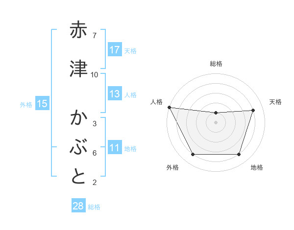 赤津 かぶとさんを姓名の画数から五運を鑑定