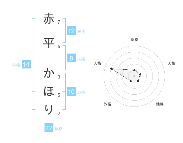 赤平 かほりさんの総格は22画の1点!