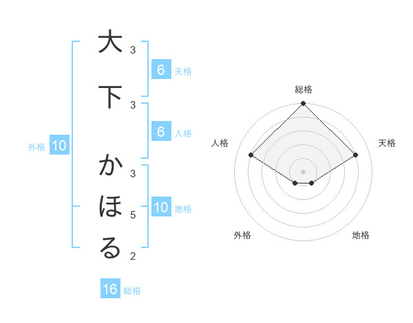 大下 かほるさんの総格は16画の5点!