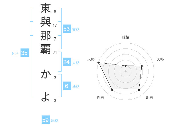 東與那覇 かよさんの天格は53画の3点