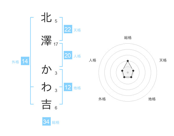 北澤 かわ吉さんを姓名の画数から五運を鑑定