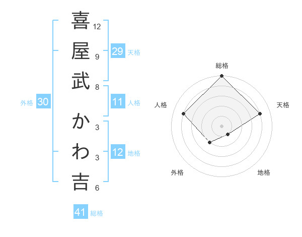 喜屋武 かわ吉さんの地格は12画の1点!
