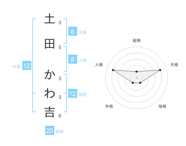土田 かわ吉さんを姓名の画数から五運を鑑定