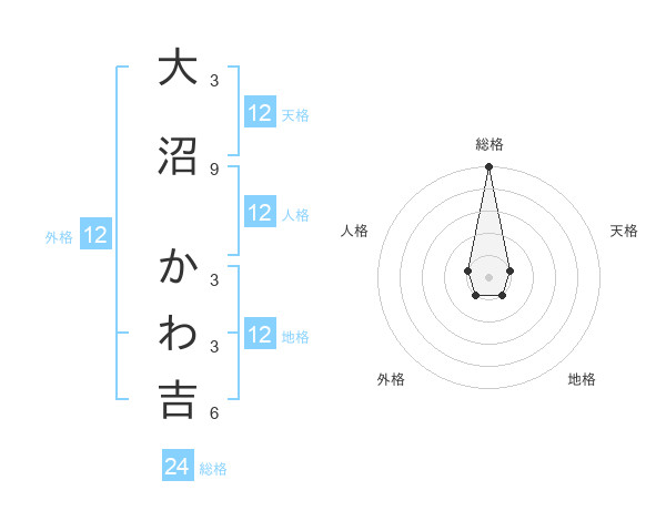 大沼 かわ吉さんを姓名の画数から五運を鑑定