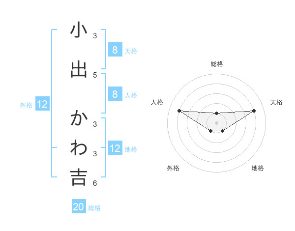 小出 かわ吉さんを姓名の画数から五運を鑑定