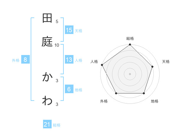田庭 かわさんの総格は21画の5点!
