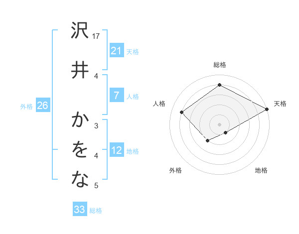 沢井 かをなさんの天格は21画の5点!