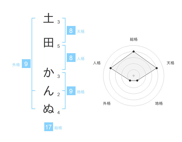 土田 かんぬさんを姓名の画数から五運を鑑定
