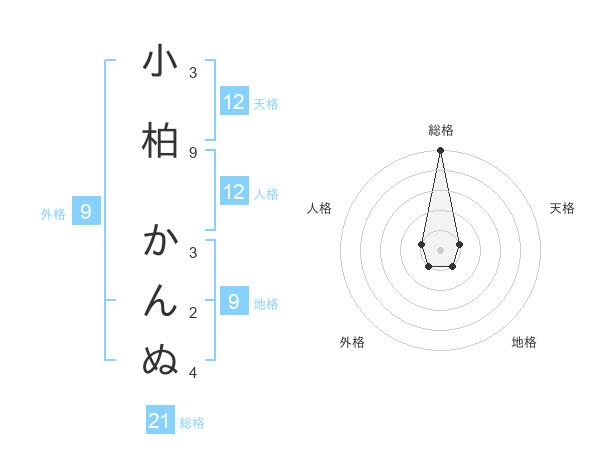 小柏 かんぬさんの総格は21画の5点!