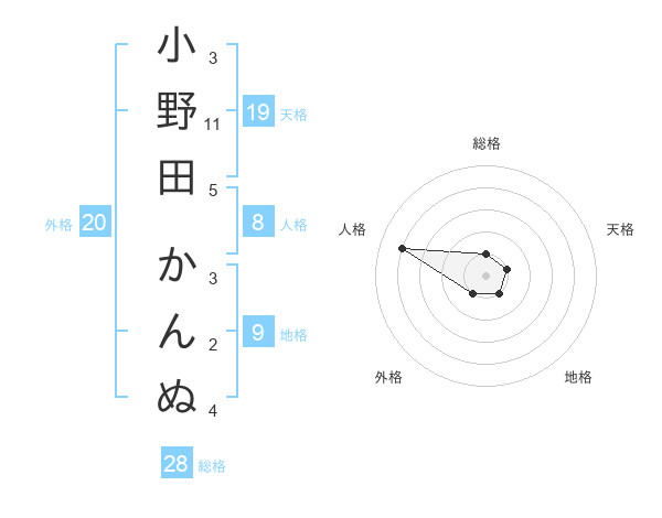 小野田 かんぬさんの総格は28画の1点!