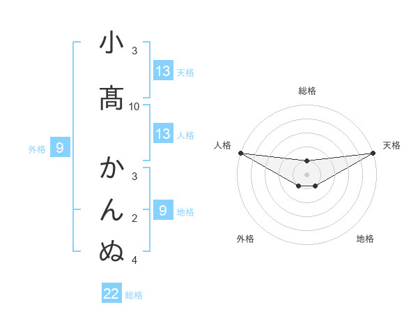 小髙 かんぬさんを姓名の画数から五運を鑑定