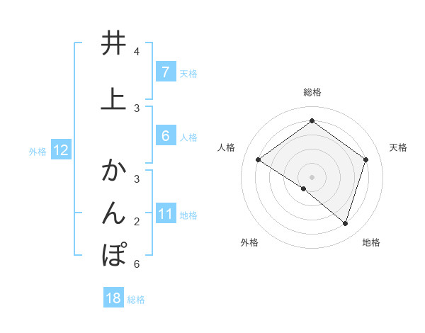 井上 かんぽさんを姓名の画数から五運を鑑定