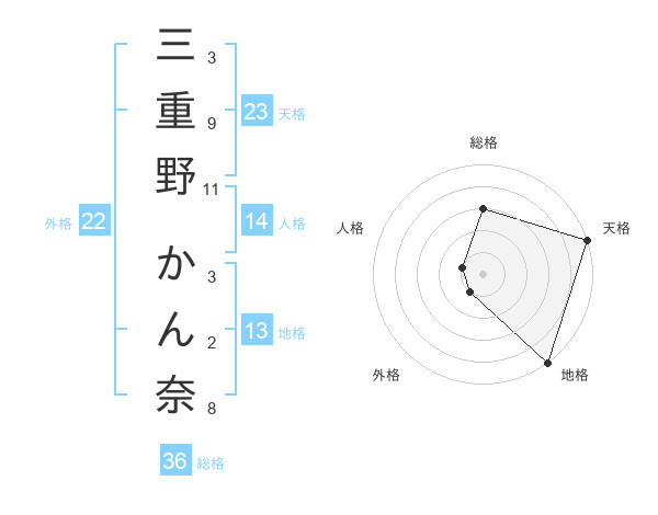 三重野 かん奈さんを姓名の画数から五運を鑑定