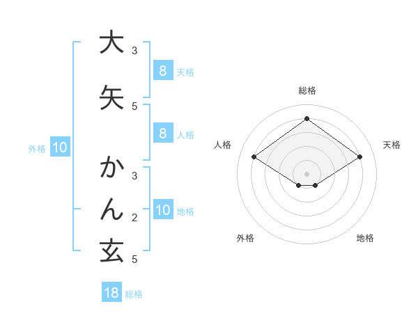 大矢 かん玄さんを姓名の画数から五運を鑑定
