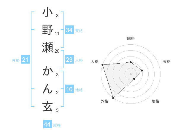 小野瀬 かん玄さんを姓名の画数から五運を鑑定