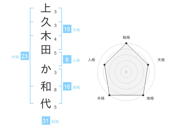 上久木田 か和代さんの総格は31画の5点!