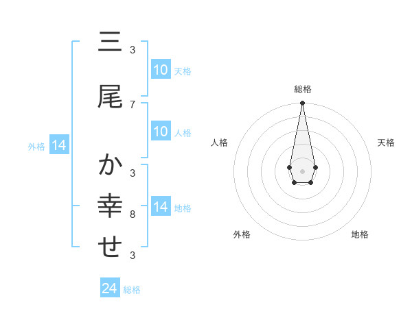三尾 か幸せさんを姓名の画数から五運を鑑定