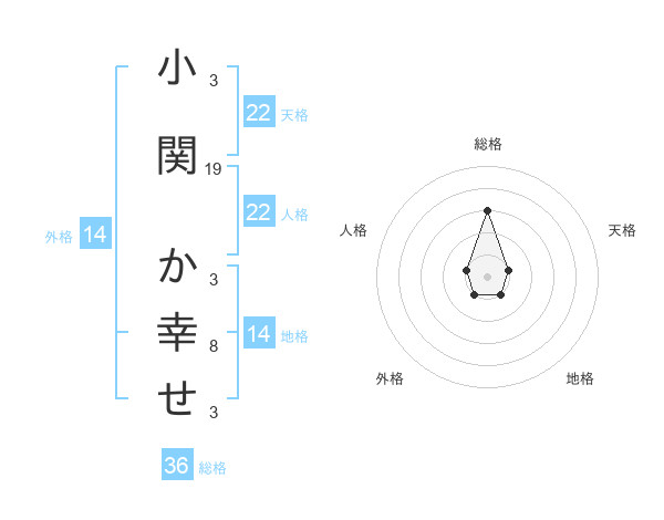 小関 か幸せさんを姓名の画数から五運を鑑定