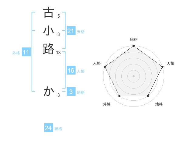古小路 かさんの天格は21画の5点!