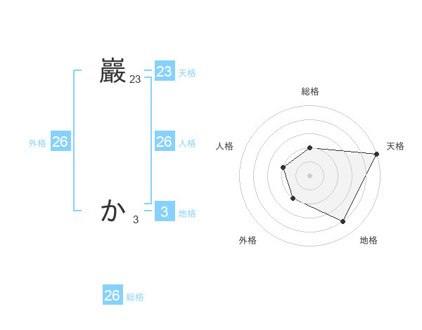 巖 かさんの天格は23画の5点!