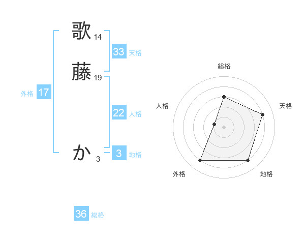 歌藤 かさんの総格は36画の3点!