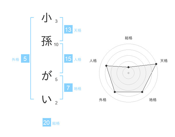 小孫 がいさんの総格は20画の1点!
