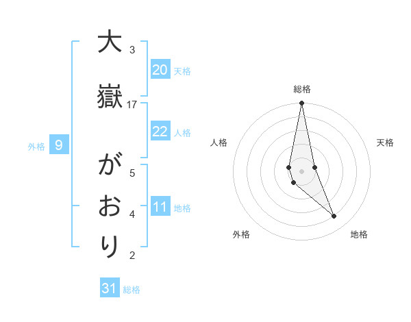 大嶽 がおりさんの総格は31画の5点!