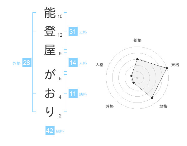 能登屋 がおりさんを姓名の画数から五運を鑑定