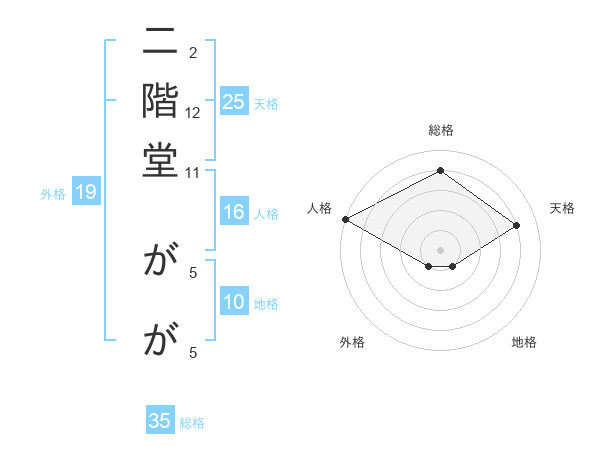 二階堂 ががさんを姓名の画数から五運を鑑定