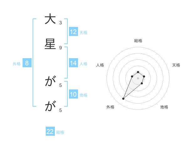 大星 ががさんの外格は8画の4点!