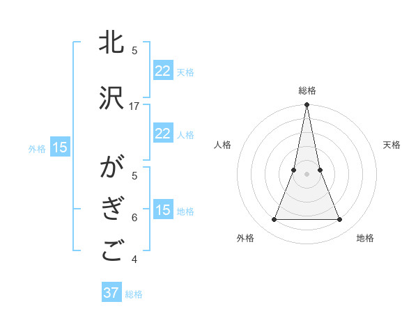 北沢 がぎごさんを姓名の画数から五運を鑑定