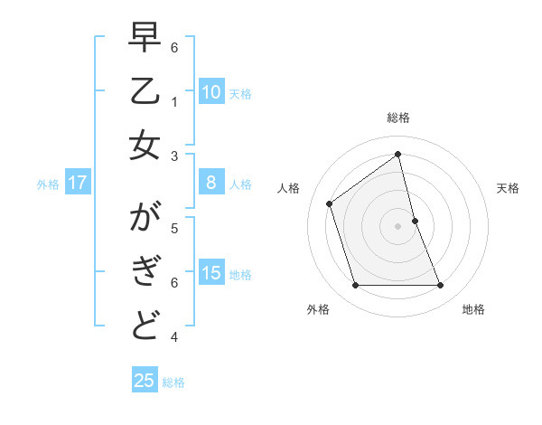 早乙女 がぎどさんの外格は17画の4点!