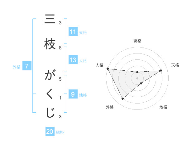 三枝 がくじさんの総格は20画の1点!