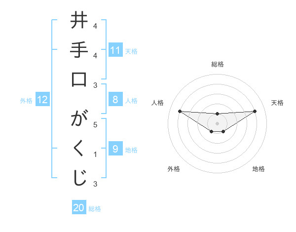 井手口 がくじさんを姓名の画数から五運を鑑定