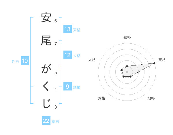 安尾 がくじさんの天格は13画の5点!