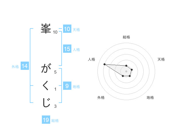 峯 がくじさんの総格は19画の1点!