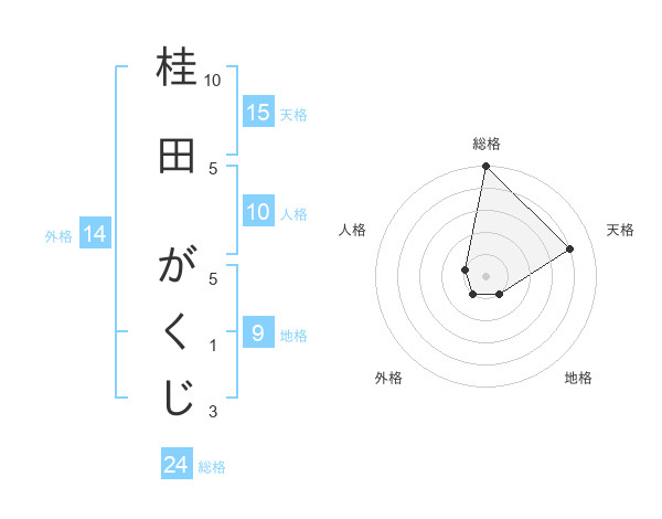 桂田 がくじさんの総格は24画の5点!