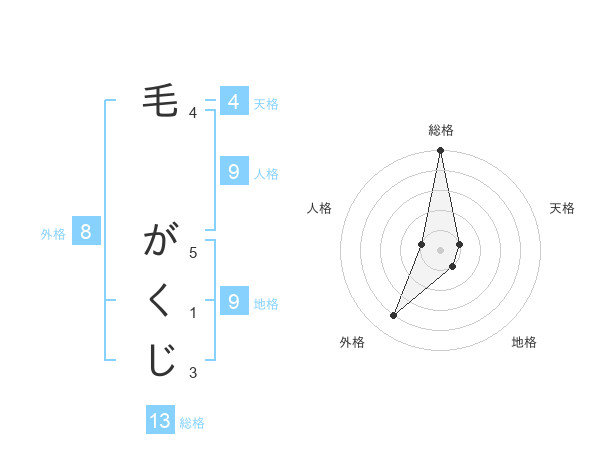 毛 がくじさんの総格は13画の5点!