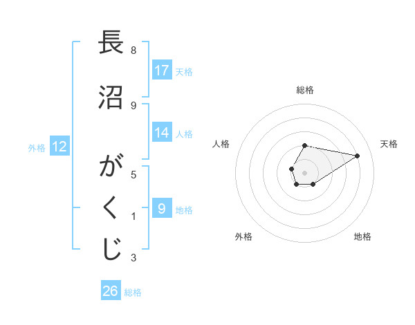 長沼 がくじさんの総格は26画の2点!