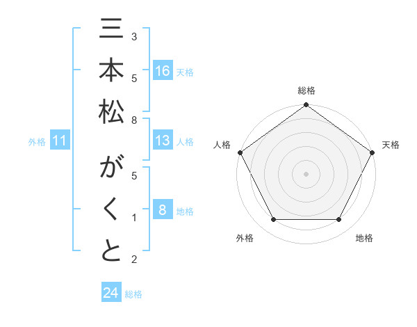 三本松 がくとさんを姓名の画数から五運を鑑定