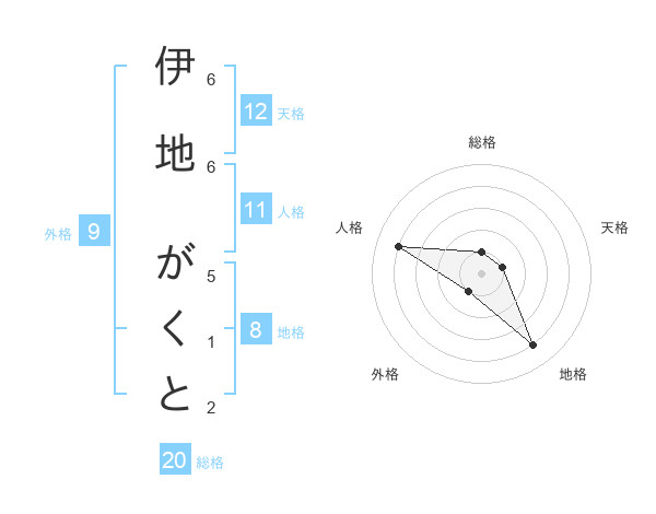 伊地 がくとさんを姓名の画数から五運を鑑定