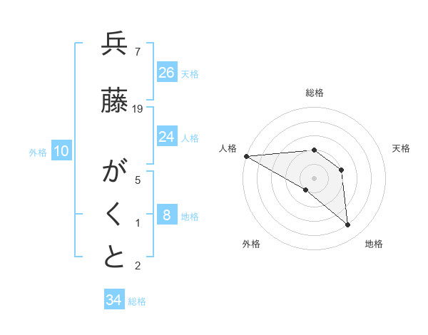 兵藤 がくとさんの総格は34画の2点!
