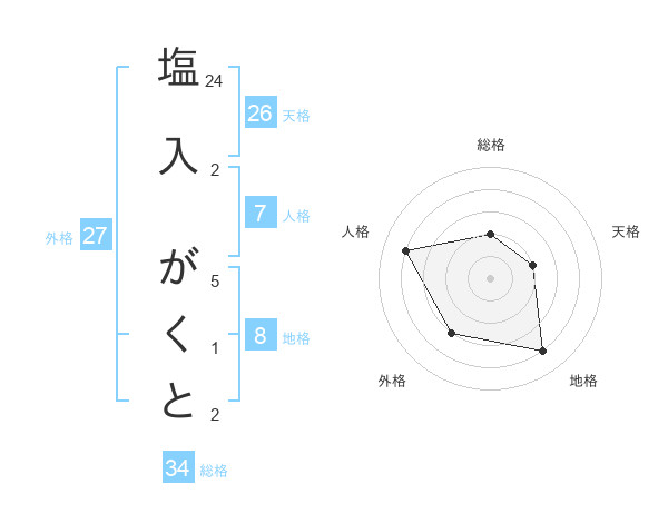 塩入 がくとさんの総格は34画の2点!