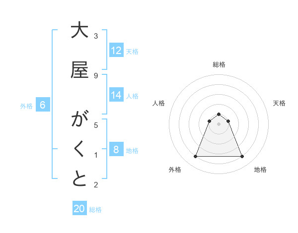 大屋 がくとさんの総格は20画の1点!