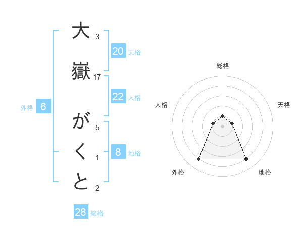 大嶽 がくとさんを姓名の画数から五運を鑑定
