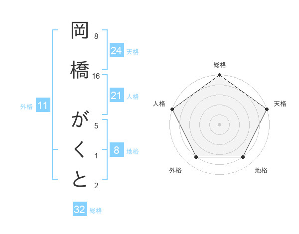 岡橋 がくとさんを姓名の画数から五運を鑑定