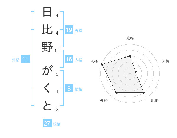 日比野 がくとさんを姓名の画数から五運を鑑定